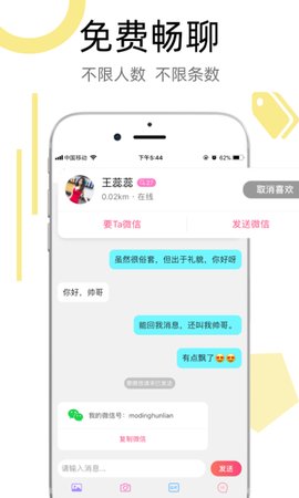 陌叮交友APP是一款特别受欢迎的交友软件,软件支持多人在线交友,软件里有海量优质的用户,用户的信息都是经过实名认证的,你可以放心在这里交友,在这里你能遇见拥有有趣灵魂的人,真人与你在线聊天。
