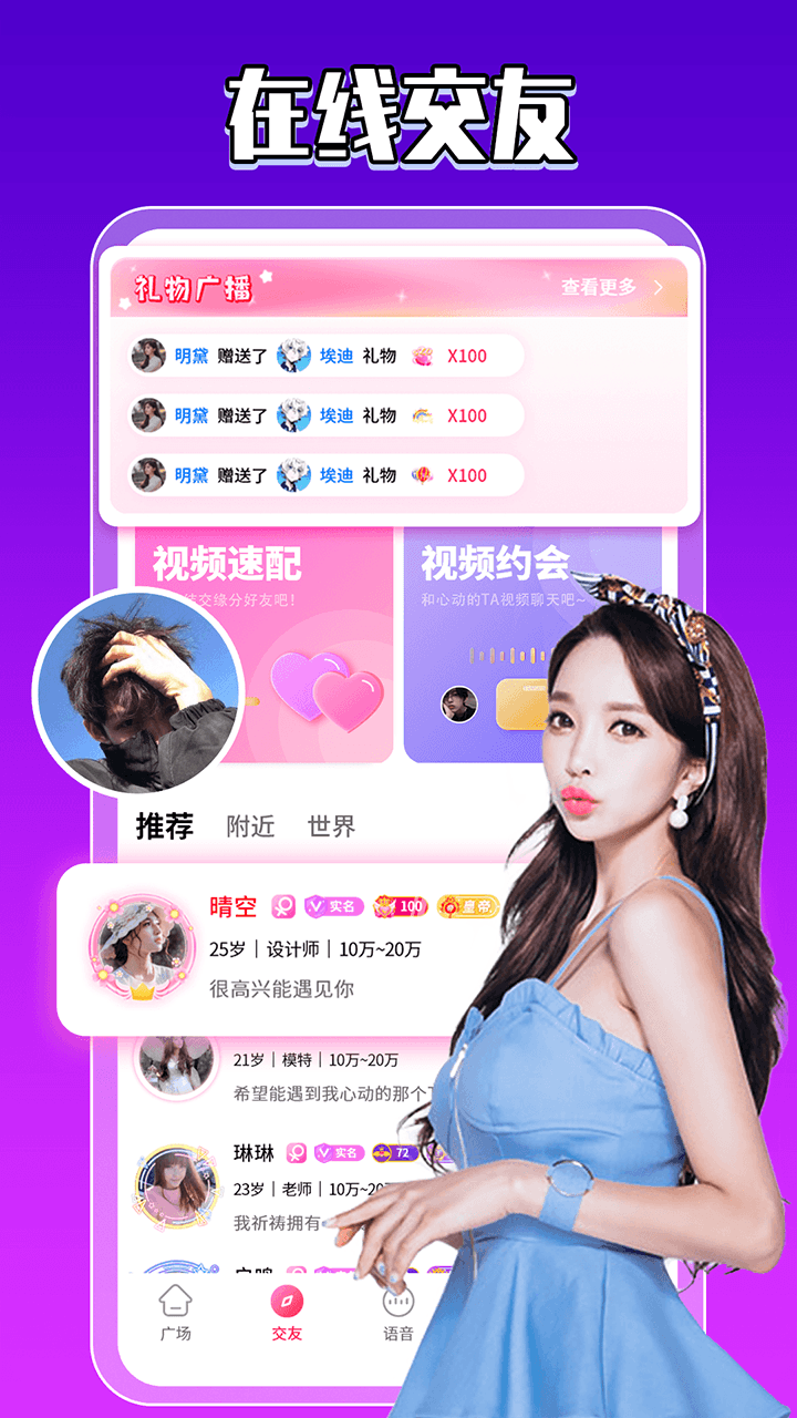 【与陌生人聊天】看电影、吃饭、锻炼身体、旅行、购物、简单方便的邀请、快速脱单探索周围的恋人、与陌生人聊天和交朋友,不仅通过视频交朋友,还可以快速结交小朋友、你的约会法宝和浪漫朋友。