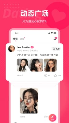 一款非常真实可靠的手机互动恋爱交友软件,软件内各种有趣的交友互动玩法都是免费提供给用户朋友们使用的哦,在这里大家能放心的和自己感兴趣的新朋友们互动聊天,参与体验各种有趣的交友互动内容。