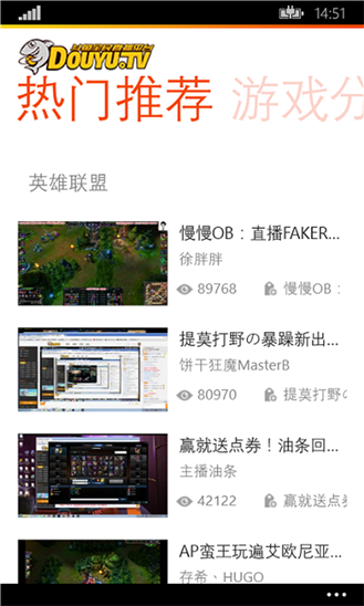 DouyuTv for Windows Phone 是由广州斗鱼网络科技有限公司推出的免费视频直播app,WP8用户安装此软件后可以观看斗鱼网站上大部分直播流和弹幕