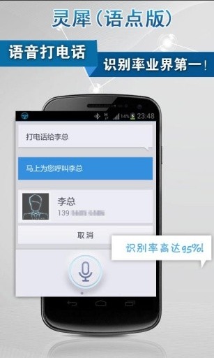 讯飞语点是专注于中文的语音助手。语音识别率高达95%,精确度业界第一!由中文语音第一品牌科大讯飞打造,一款能够语音打电话,发短信,智能聊天等的极具实用性语音软件。科大讯飞是中文语音第一品牌。语音技术广泛应用到新浪微博、米聊、大众点评等各大知名应用。并受到柳传志、李开复、雷军、罗永浩等业内外知名人士高度认可。