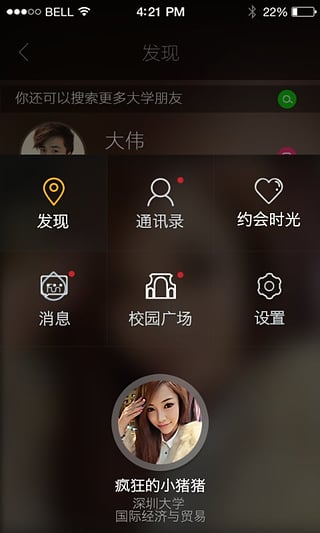 记录校园最新动态,参加和发布最新Party、社团活动,发现兴趣相投的同学