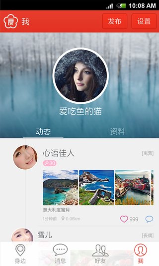 3.动态:实时分享个人动态,发布心情、图片,发表评论与好友互动