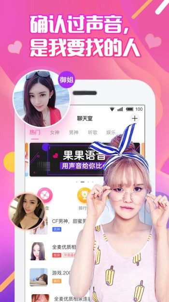 果果语音是一款有趣好用的在线直播平台。给大家展示了新的沟通和交朋友的方式遇到最美的声音,可以见到更多可爱的朋友,这里有各种好听的声音,有罗琳、郑泰恩、天呐、炳校音等你喜欢的东西,给你带来不同的听觉盛宴。果果语音下载就在yn下载站!