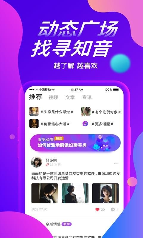 面面约官网版是一款有趣好用的在线直播平台。通过这个应用程序,遇到很多和很多人有缘分的人,体验和陌生人匿名交往的方式,遇到缘分。推荐符合心意的用户。很容易见到和你有同样兴趣和话题的朋友,就能知道爱的心。面面约地址下载就在yn下载站!