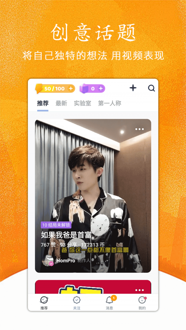 1、用户可以在平台上随时观看新的简短视频,而无需广告和内容;