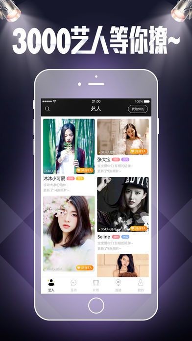 1.聚集万千粉丝,汇集多栖明星艺人模特、全天24小时无间断视频直播秀