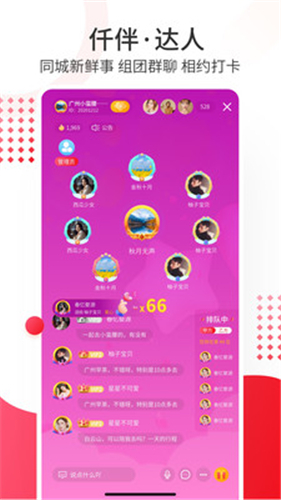 3、同城新鲜事,组团群聊,相约打卡,趣味十足。