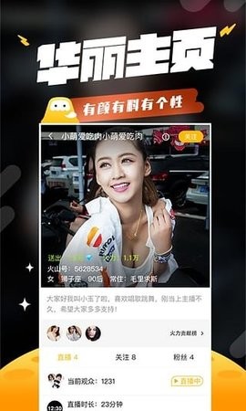 火山直播app是一款有趣好用的在线直播平台。与萝莉主播在线互动,提供优质服务,无论你在哪里,我都会分享你的故事。方便交谈,容易与主持人搭讪。无论何时何地都可以一键展现你的生活。直播落下弹幕,存在感爆发。火山直播app下载安装就在yn下载站!