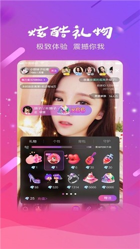 1、纵情互动:无限点赞,实时礼物让你我距离更近。