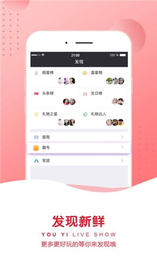 优艺直播官方版是一款全新型的小众美女聊天直播平台。以幸运为赌注,大摇滚、点球大战、具爱贞签名、盆唐大发可以反击。享受尊贵,展示帅气的坐席、入场动画、富豪等级,没有最帅气的,只有更帅气的。了直播,无论何时何地只要拿出手机,就能看到女神在线视频才艺展示。优艺直播官方下载就在yn下载站!