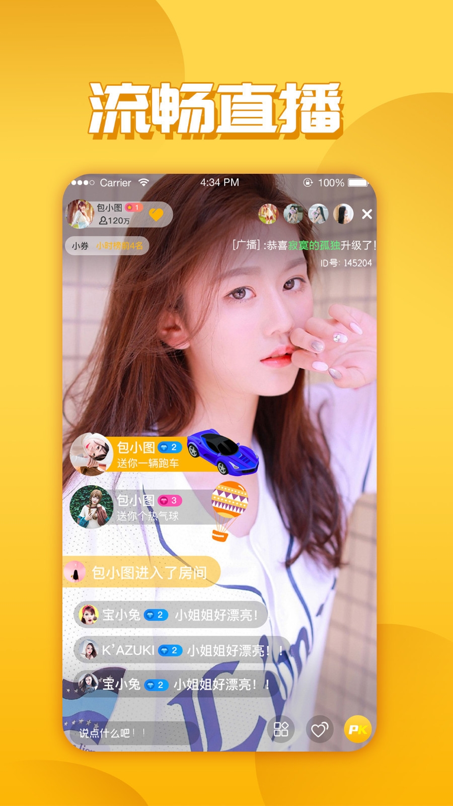 假如你喜欢的主播正和其他主播进行才艺 PK,你可以赠送礼物给主播,给主播加油;