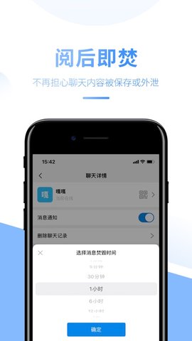 阅后即焚于设定时限内,将已传送之讯息无痕删除。