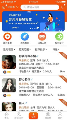 3、找运动伙伴、预订场馆一步搞定,运动者资源,组织比赛,赚取组织费。