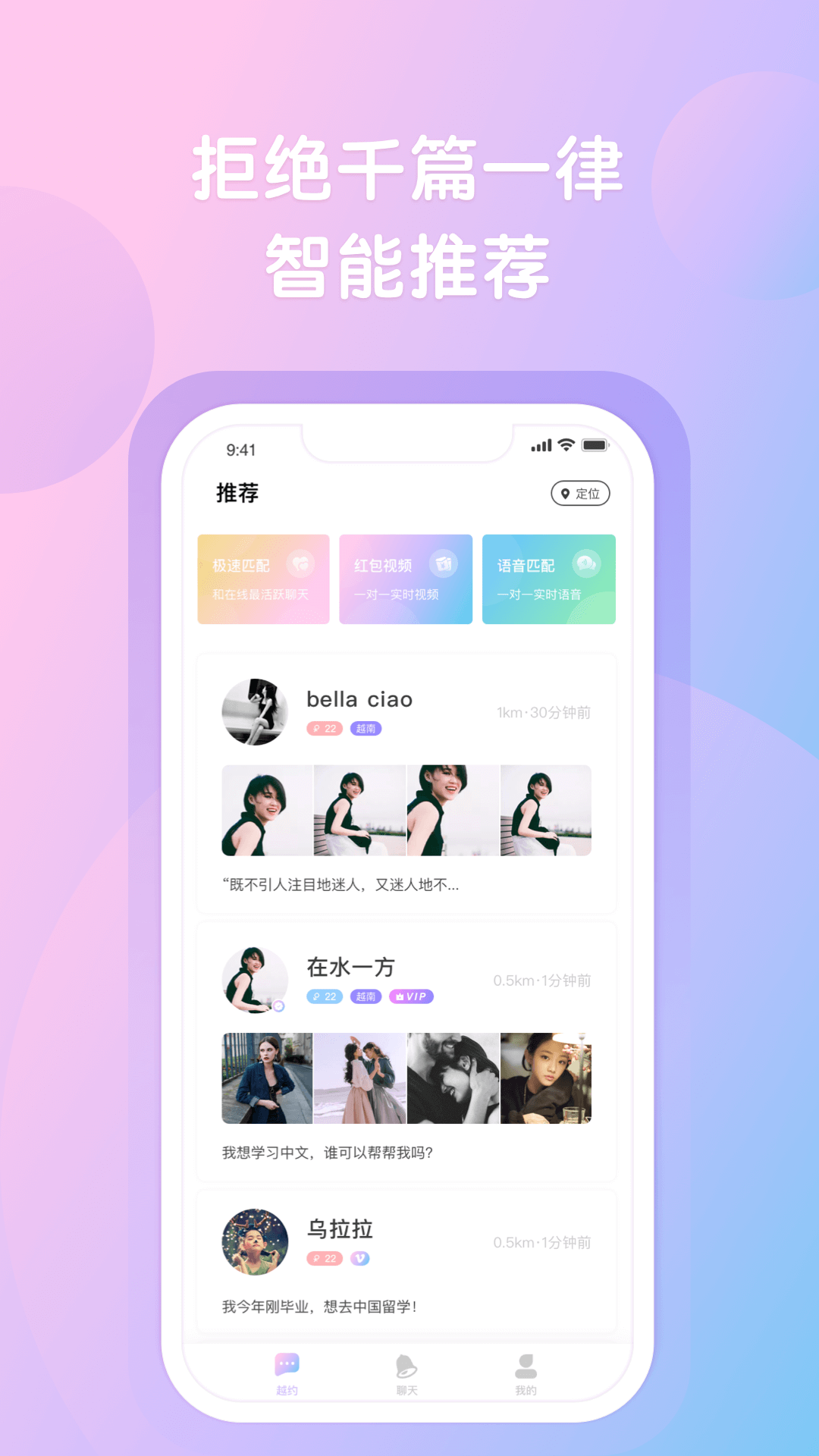 【视频匹配】根据兴趣爱好匹配聊得来的她、真人认证、一对一视频聊天、实时翻译、不怕聊天有障碍,就怕怎么聊都聊不够!