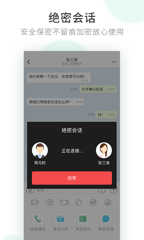 5、端到端通信,高强度加密算法;关闭秘密屏蔽,加密信息自动隐藏
