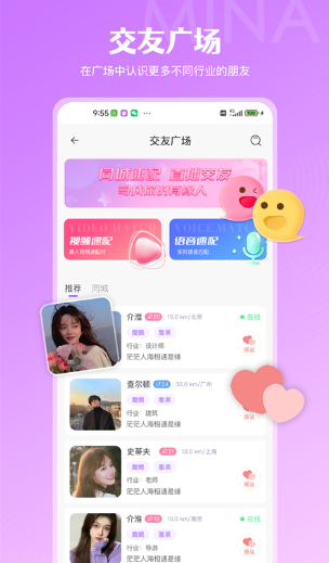 咪呐交友是款十分真实可靠的手机线上互动交友软件,软件内各种有趣的社交活动都是在线免费提供给用户朋友们使用体验的,在这里大家能尽情的享受愉悦的社交互动乐趣,各种好玩的交友内容也都是能轻松感受到,喜欢社交的小伙伴们还在等什么,快下载软件来试试看吧。