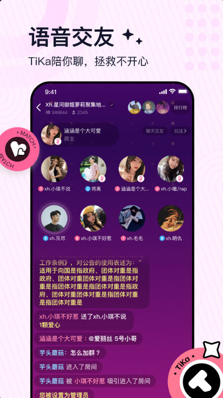 Tika交友是款十分好用的手机互动交友软件,软件内有许多精彩的交友互动神器提供给用户朋友们进行使用体验,在这里大家能在线感受到精彩愉悦的社交互动乐趣,各种好玩的交友活动也都是能在线参与使用体验的,喜欢交友的小伙伴们赶快下载软件来使用试试看吧,非常的精彩哦。