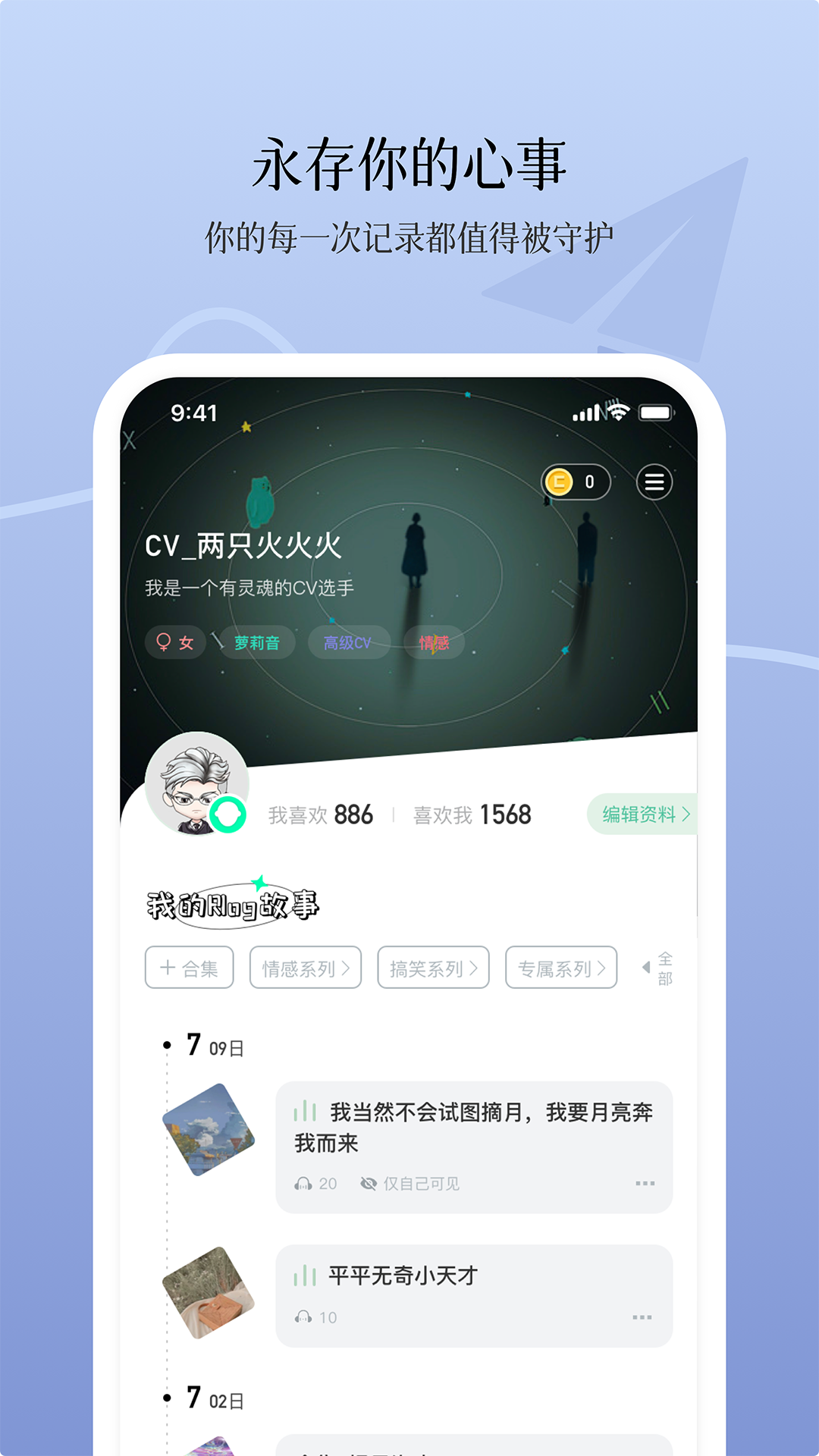 非常独特的一款异时空真人动漫化社交软件,在软件内用户朋友们能敞开自己的内心世界,在平台进行匿名社交,倾诉自己的真实想法和情感。还能在这里发泄自己的负面倾诉,感受真实的社交互动环境。
