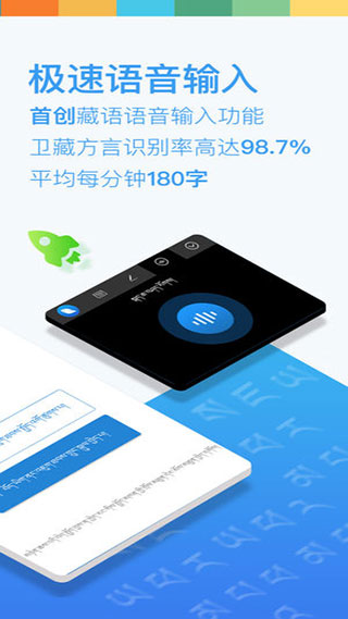 1.极速语音输入,藏语语音输入功能,卫藏方言识别率高达98.7%,平均每分钟180字