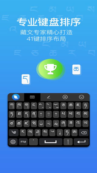 3.拼音输入,智能准确,藏文专家精心打造41键键盘布局,创造性加入三个头置字按键