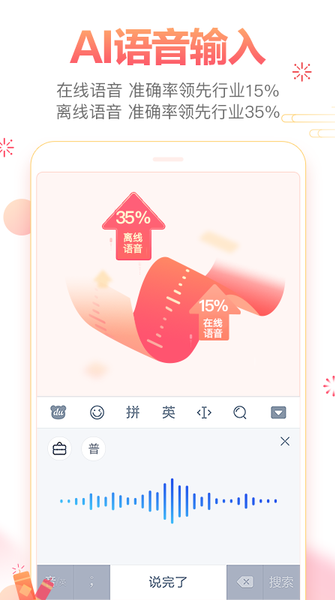 最精准语音输入:首家采用深度神经网络声音建模,识别率高,边说边上屏,节省流量超过30%