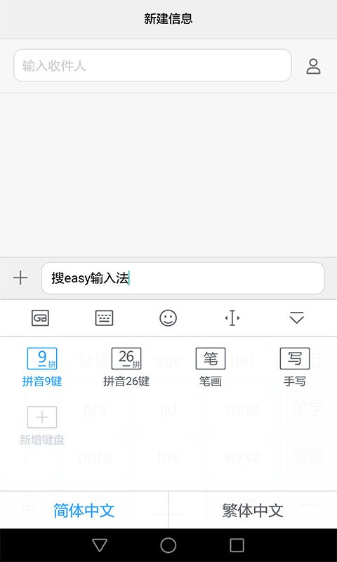 搜easy输入法安卓版是一款简单实用的输入法软件,拥有9键、26键、手写、注音、笔画等等多种输入模式,用户直接在输入的时候就可以进行随意地切换,让输入变得更加快捷。搜easy输入法app下载后还拥有丰富的键盘皮肤可供用户选择使用,每天都能够更换新皮肤,让输入更加新颖。