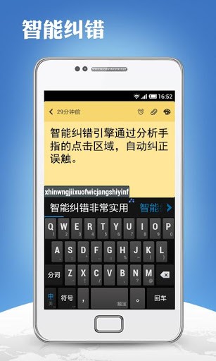 2、智能自动纠错:智能纠错引擎通过分析你手指的点击区域,自动纠正用户在输入时的错误;