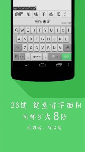 清歌输入法app是前所未有的安卓输入法。青歌输入法追求手机输入体验的极限。青歌输入法颠覆性的猿人大面板设计,带首字区。它已经扩展了 8 倍,使输入更快更冷。猿的大面板是青歌输入法独有的,输入效率大大提高。另外,青歌输入法中符号和表情的输入直接显示,输入不中断,效率更高。 感兴趣的小伙伴可以来yn下载站对清歌输入法安卓版下载并体验。