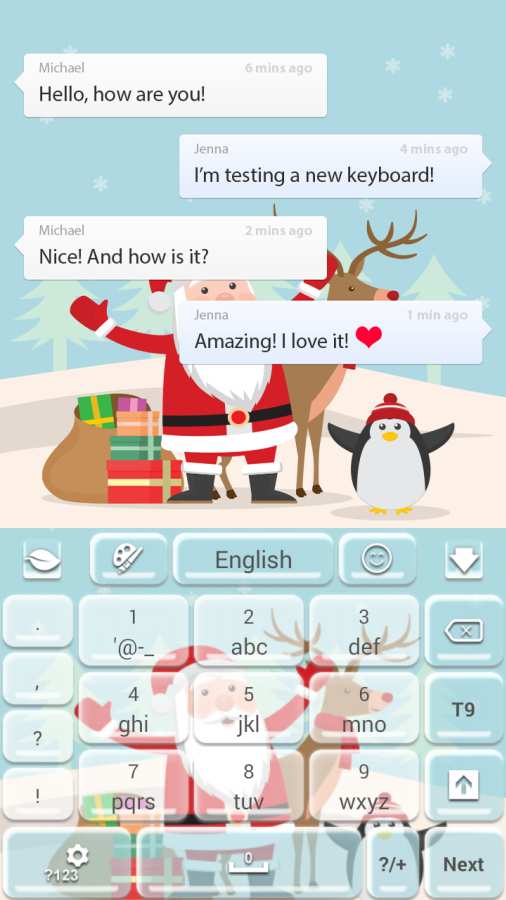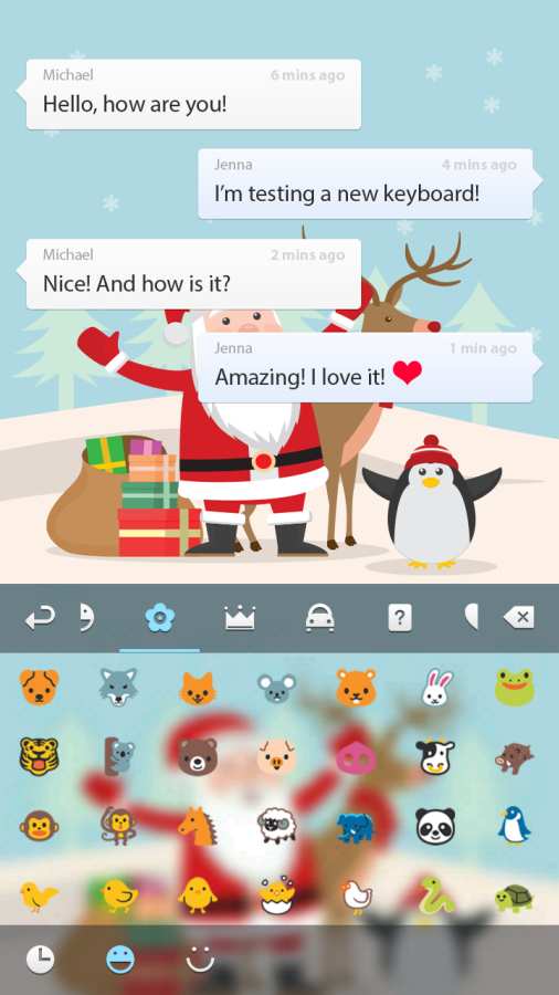 圣诞快乐键盘app界面简单,易于操作,具有多种类型的皮肤,并具有准确的键入,圣诞快乐键盘软件下载之后有快速的速度和丰富的词汇等功能,为您带来便利的体验,体积小,运行速度快,内存少,并且没有广告弹出窗口,支持用户登录以同步用户数据,在设计风格上,支持全局外观,外观可以随意更改,它可以支持多种输入模式,例如拼音,英语,语音,数字,符号等,感兴趣的用户欢迎来yn下载站下载使用。