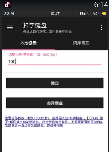 扣字键盘输入法是一款非常好玩有趣的手机怼人输入法,无广告即可免费使用,扣字键盘软件下载之后拥有智能化的词库管理,一键设置字数,操作简单容易上手,无论你是在游戏中还是与其他好友聊天时,开始使用之前要在设置里面开启键盘的使用,支持暂停秒数的自定义设置,拥有本地键盘以及词库的管理,词库管理可以可以任意选择编辑词汇,经典语录随意使用,有需要的用户欢迎来yn下载站下载使用。