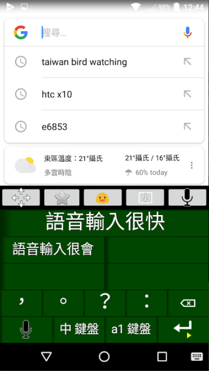4、萤幕键盘上的长按键可快速切换各种键盘。不输入时没有工具列&编辑选字区佔据萤幕的缺点。也可以改成传统编辑区内嵌的方式;