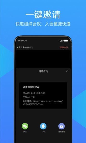 1.金山会议app适用于不同场景的在线视频通话服务,支持多人同屏沟通。