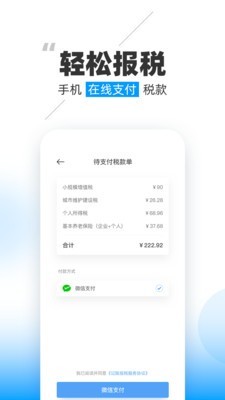 1晓账app系统针对所有税收数据进行计算,最终得到具体税款价格,还能直接在线用微信支付税款。