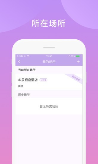2.打卡范围显示,即时浏览到工作范围,提供未在范围或在范围的字样。