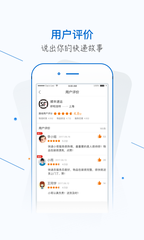 1.为企业及个人用户提供主流快递公司和众多中小物流公司选择,支持运费和时效查询。
