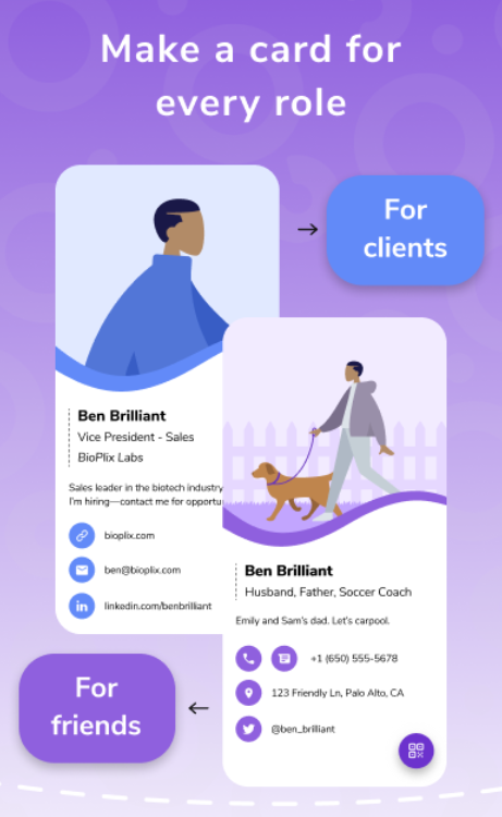 1、创建多张卡片,上面有不同的信息,适合在不同的场合与人分享。一个是工作用的,一个是私人用的,嘿,甚至一个是给你的狗用的!