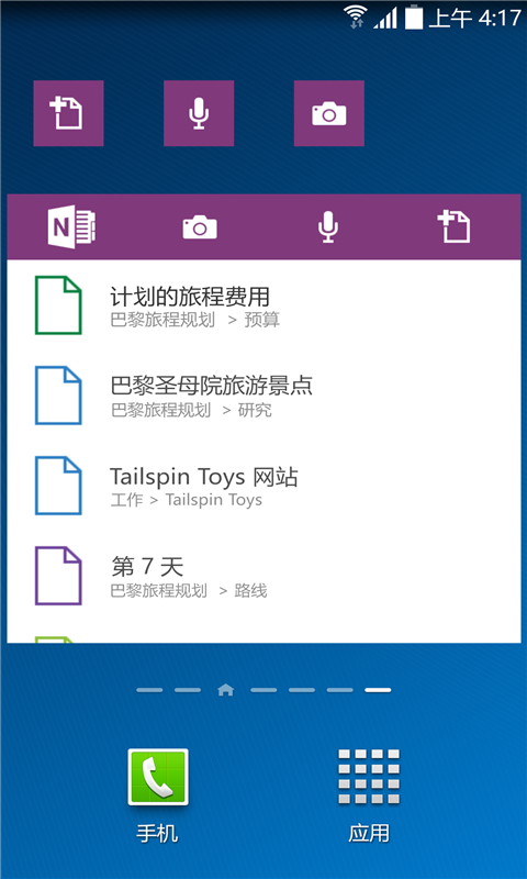 8、使用“OneNote 最近”小组件从主屏幕访问最近的笔记。