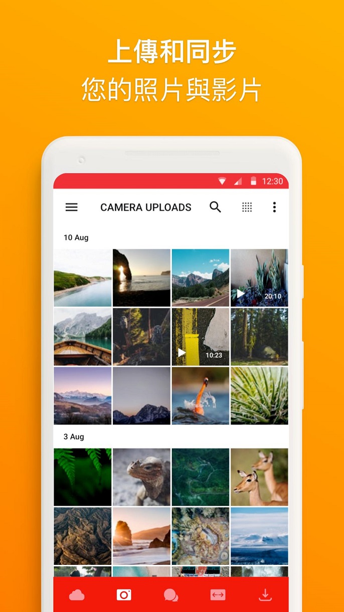 从智慧型手机或平板电脑上传档案,然后搜寻、储存、下载、串流传输、查看、分享,重新命名或随时随地从任何装置删除您的档案。与您的联络人共享资料夹,并即时查看档案更新状况。加密功能表示我们无法访问或重置您的密码,因此您必须记住它(除非您有备份还原金钥;忘记密码时可透过金钥重设帐号密码),否则您将无法访问储存的档案。