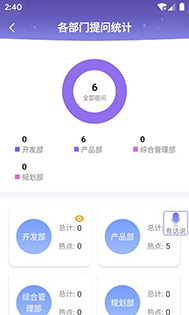 2.能够统计出每一个部门的提问问题数量,及时查看提问次数最多的员工