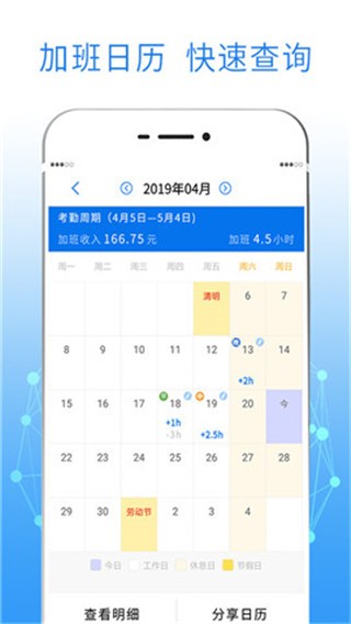 【小编推荐】:友工记加班,一款专门为上班族准备的商务办公app,软件能方便为用户自动计算加班考勤工资表,直观呈现加班绩效,个人工资情况一目了然,让您随手记工资安心记加班,还有补给记加班日历。
