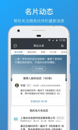 3.精准找到你想找的企业联络人,用电子名片,名片有更新,随时提醒