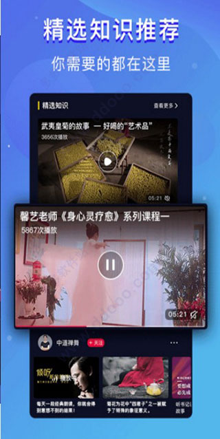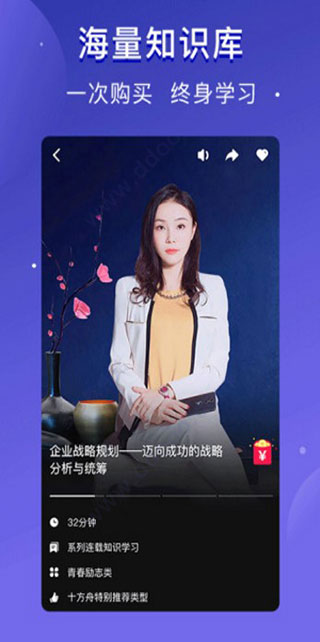 3、该app集聚各界名人讲师、专业人士,利用碎片化的线上学习方式,结合线下的优质培训课程、沙龙,让用户真正得到知识和身心灵的快速提升。