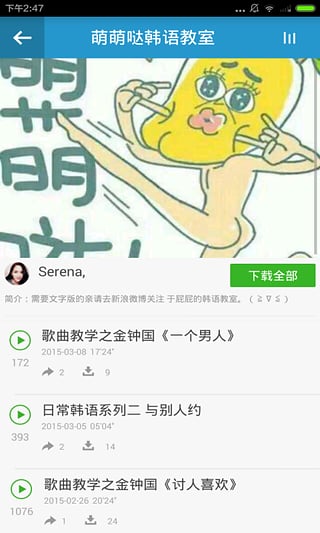 【音频充电】涵盖日常生活的方方面面,本地缓存,真实发音,方便快捷分类学习常用语,教你实用韩国语。