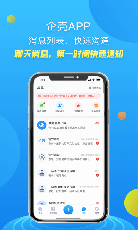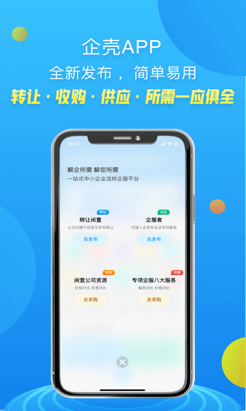 企壳安卓版是一款帮助企业流转的软件,方便企业进行商标注册、商标设计、专利申请等等服务事项,想要转让公司的时候也可以一键发布相关的信息让其他企业来进行收购。企壳app下载后直接在平台上就可以完成相关的事务办理或是和他人进行沟通交流,各种功能一应俱全。