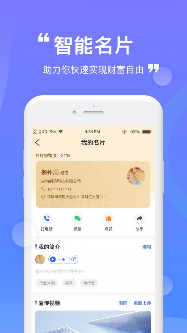云客兔最新版是一款非常智能的商务办公类软件,让企业员工进行数字化的办公,让企业能够快速找到客户进行精准拓客,让自己的业绩能够迅速上升,云客兔app下载后还可以让员工快速制作自己的名片,方便员工在微信上分享自己的名片给客户。