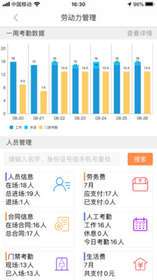 3、将企业人工、安全、材料设备、环境监测、水电等指标数据集中展示,加强企业对各类项目的管控。