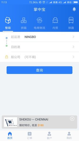 搜航掌中宝app是一款移动办公工具。用户可以在线实时输入收到的订单信息。对于不同的订单类型,包括电子商务物流、国内贸易和铁路,有详细的划分,以便您可以实时查看订单的运价参考。
