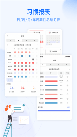 ·可设置习惯性打卡任务,每天完成任务后再打卡,生成自己的打卡记录