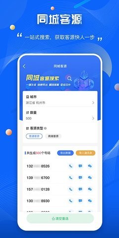 2.搜索号码:一键搜索行业联系方式和地址,帮助用户更好地联系有合作意向的客户